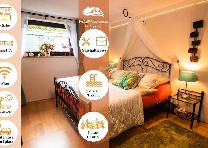 Obsahující tenisový kurt a golfové hřiště, apartmán Erholungskellerchen se nachází ve městě Bad Lippspringe, 0.4 km od Dedinger-Heide-See. Tento apartmán pojme maximálně 3 osob a skládá se z 1 ložnic a 1 koupelen.